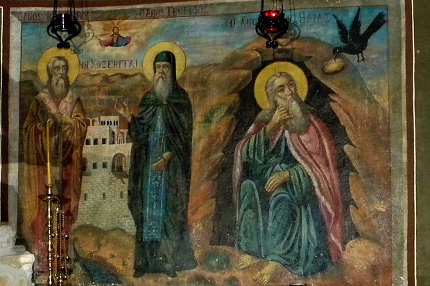 Según la leyenda, San Jorge de Kipre. Habiendo enterrado a sus padres, fue a Jerusalén y entró en el monasterio de la Santísima Theotokos – Khuziva. Posteriormente se instaló en soledad con su hermano.