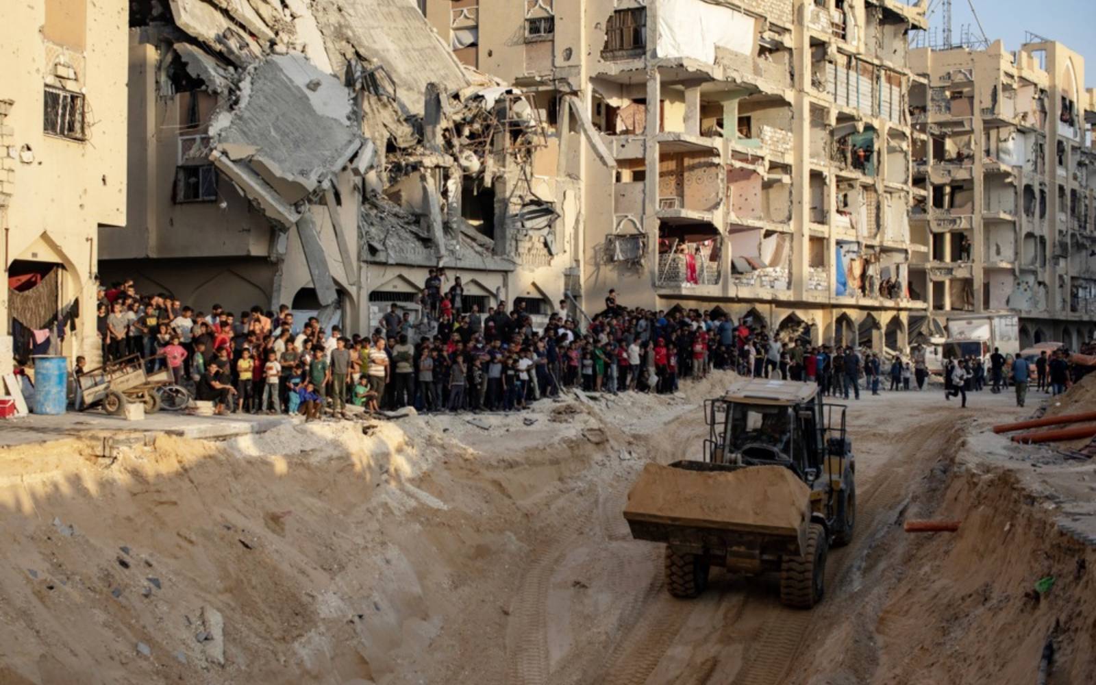 AFP footage showed an Egyptian convoy in Gaza bringing rescuers and heavy machinery to speed up the search for the remains of deceased Israeli hostages Hamas says are lost in the rubble of the devastated Palestinian territory.