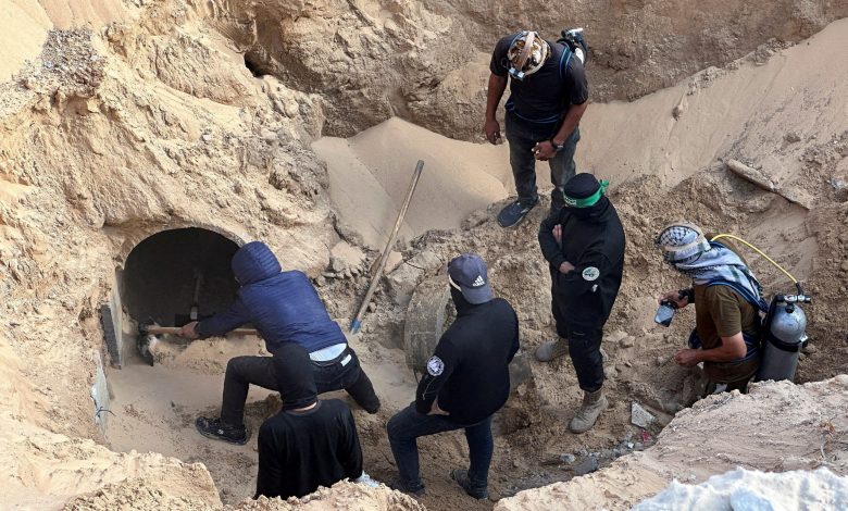 Reuters images showed an excavation a dozen or so metres below the surface, with Hamas men at the bottom of the trench next to a tunnel opening in an apparent search for bodies inside.