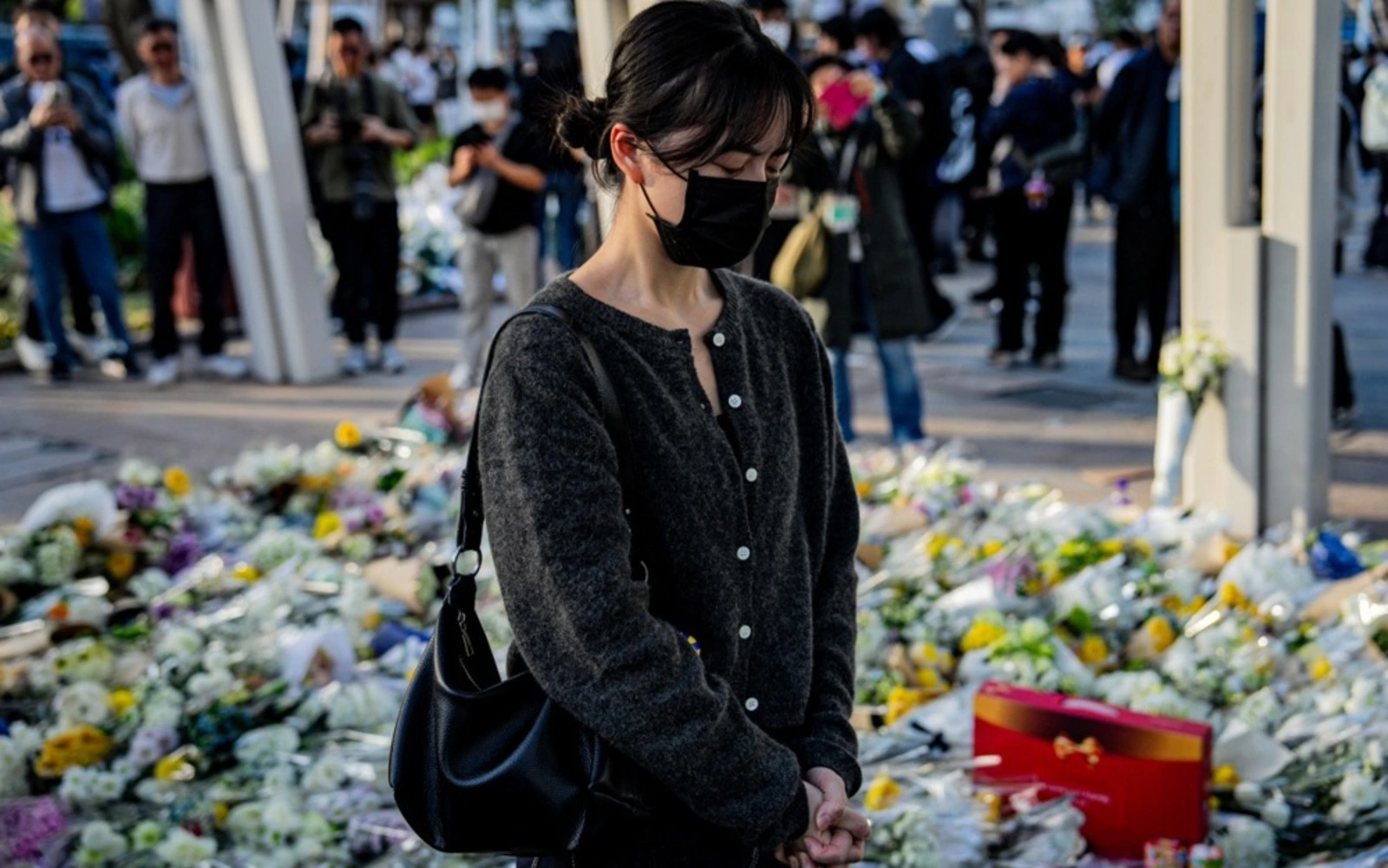 A woman prays for victims of the fire at Wang Fuk Court residential estate in Tai Po district in Hong Kong. (EPA Images pic)