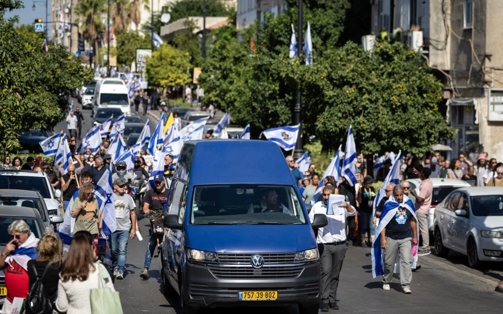 Mourners take part in the funeral procession of Yossi Sharabi, who was killed in captivity after being taken by Hamas during their Oct 7, 2023 attacks. (AFP pic)