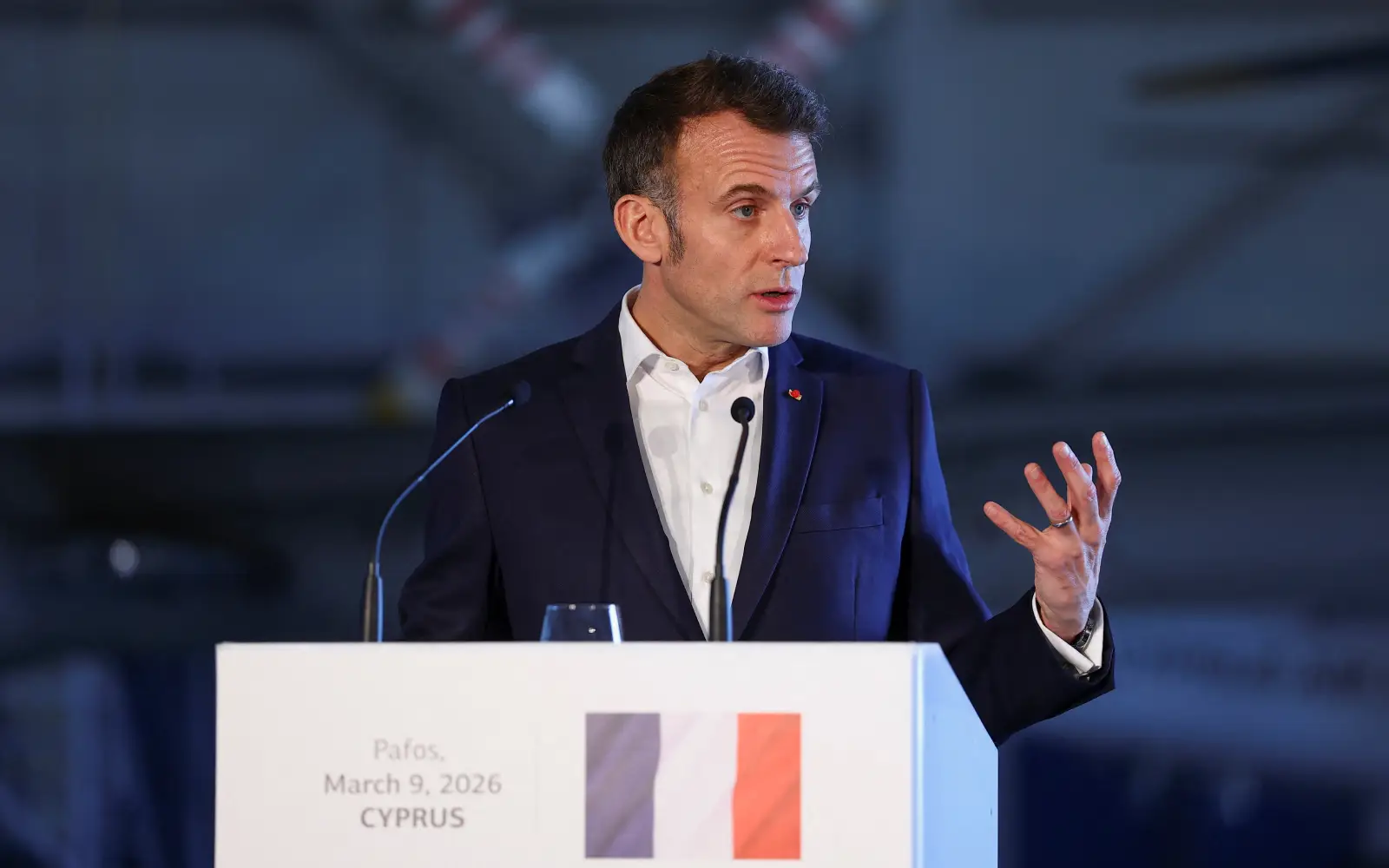 Macron visited Cyprus after the island nation and EU member was targeted by Iranian-made drones in early March.